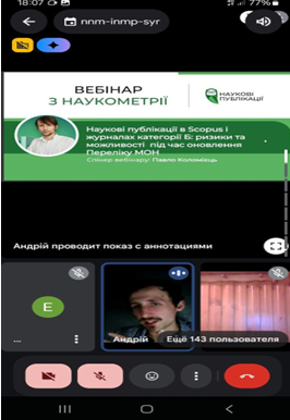 Під час вебінару було показано, що публікаційна система України змінюється – і не всі журнали зможуть залишитися в категорії Б. Нові вимоги, посилений контроль МОН та реформування переліку журналів роблять процес публікації все складнішим.